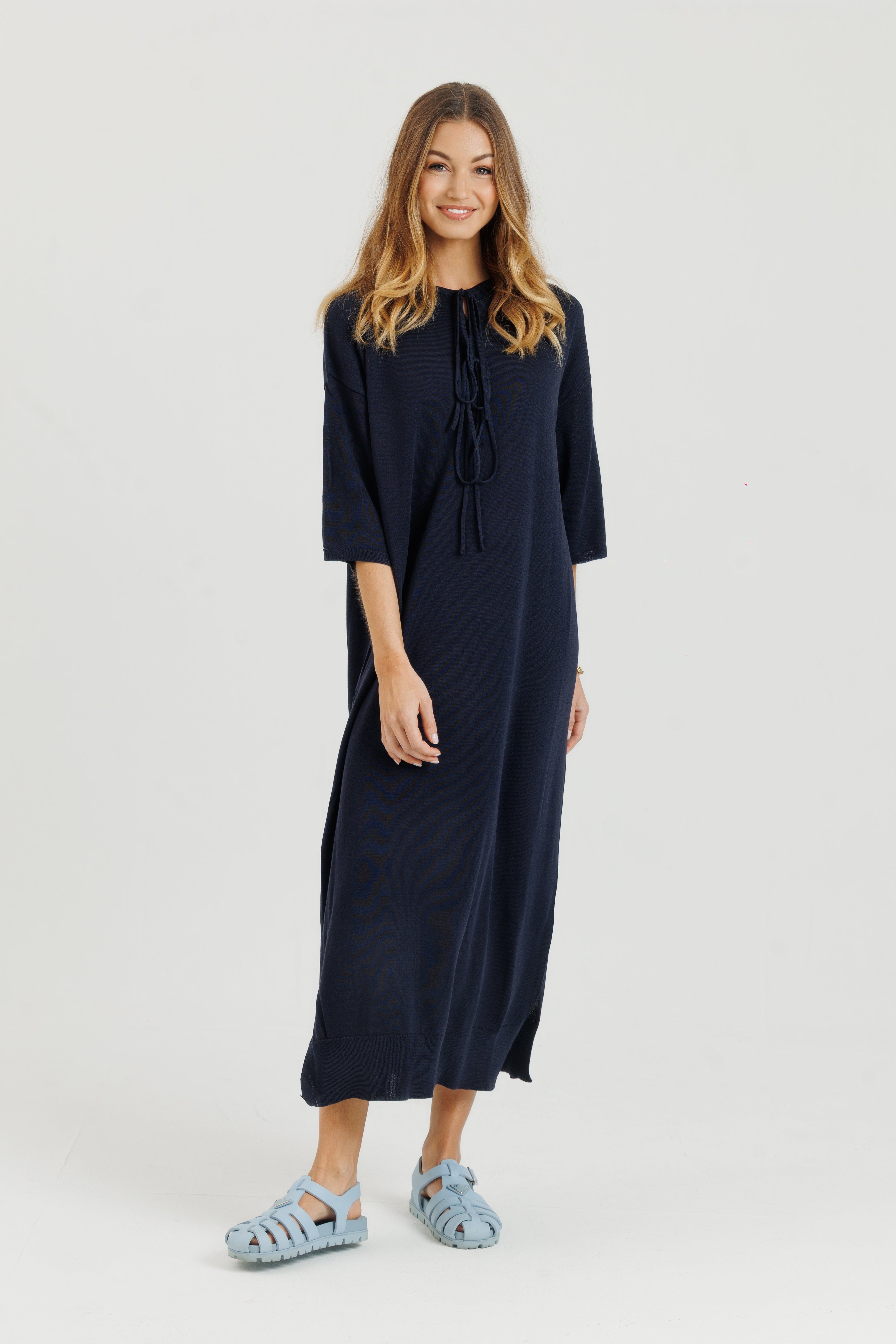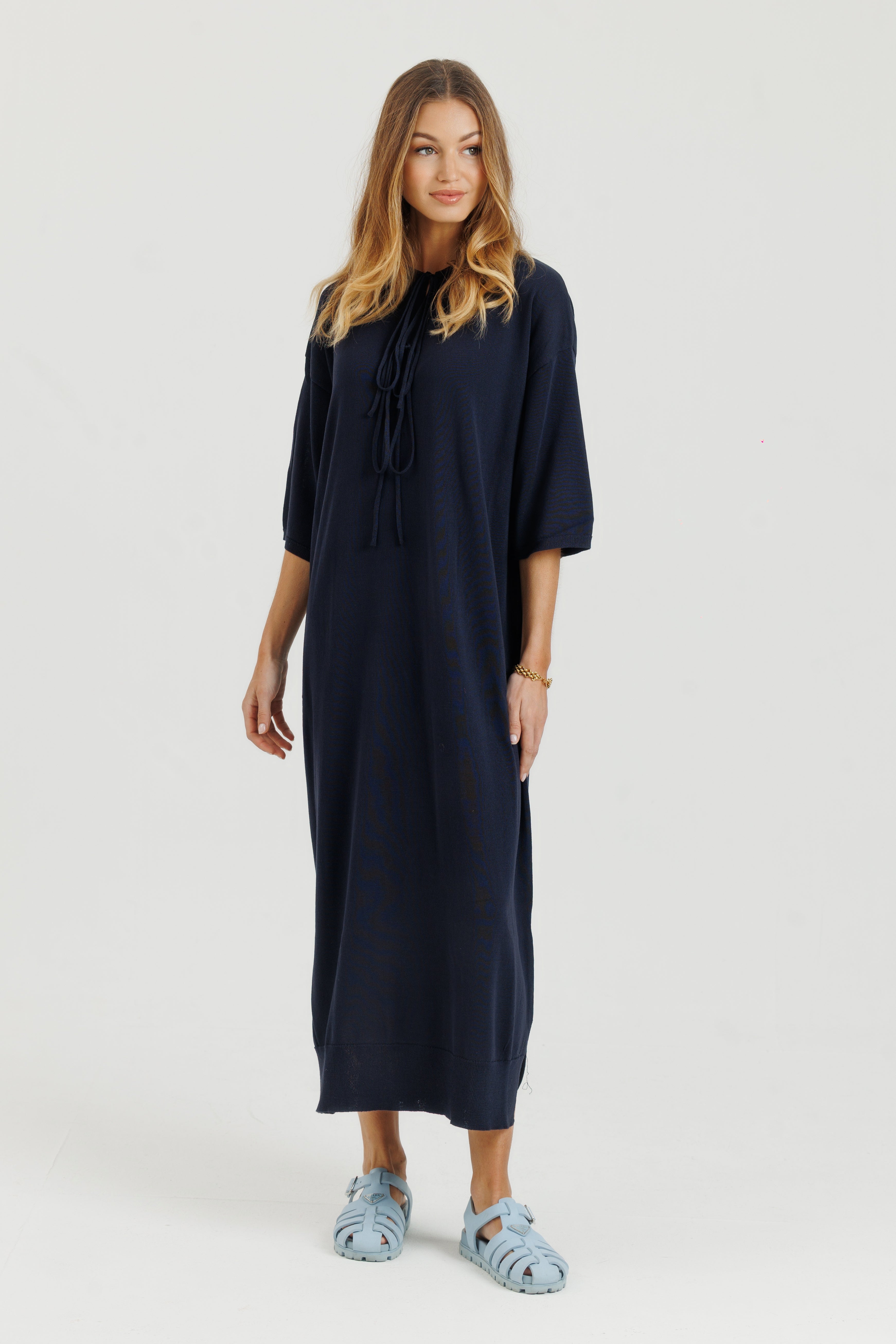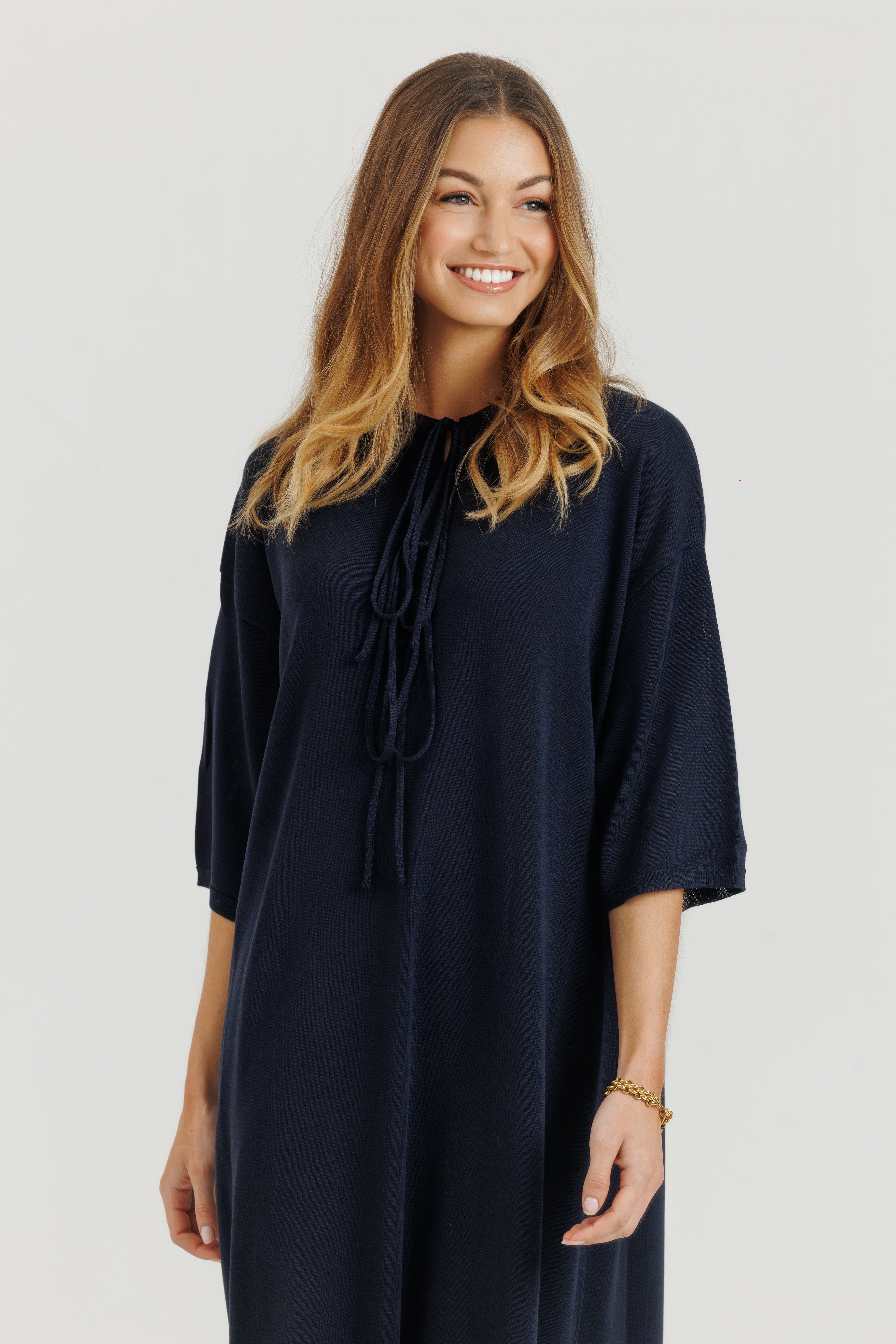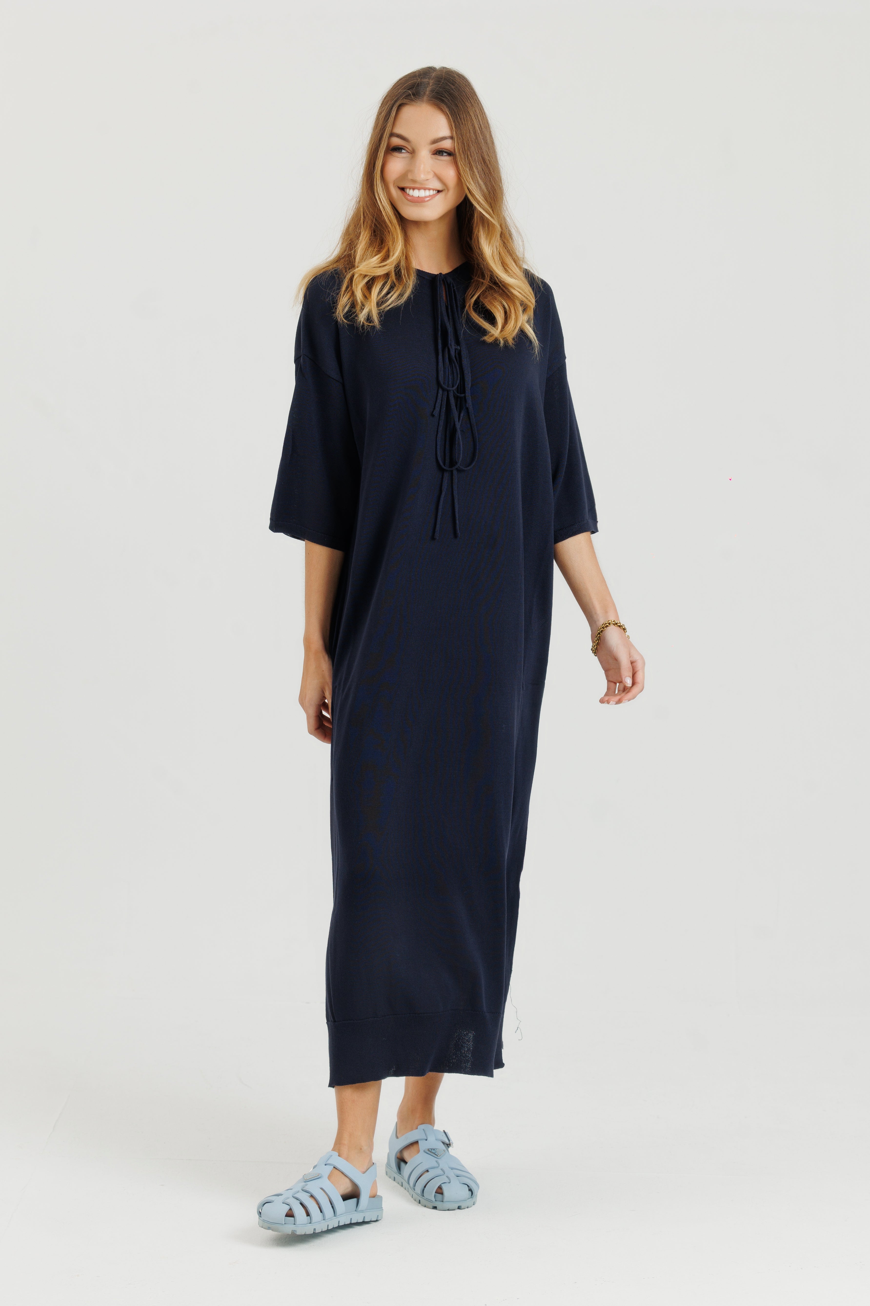 Cotton Stitch Dress Navy