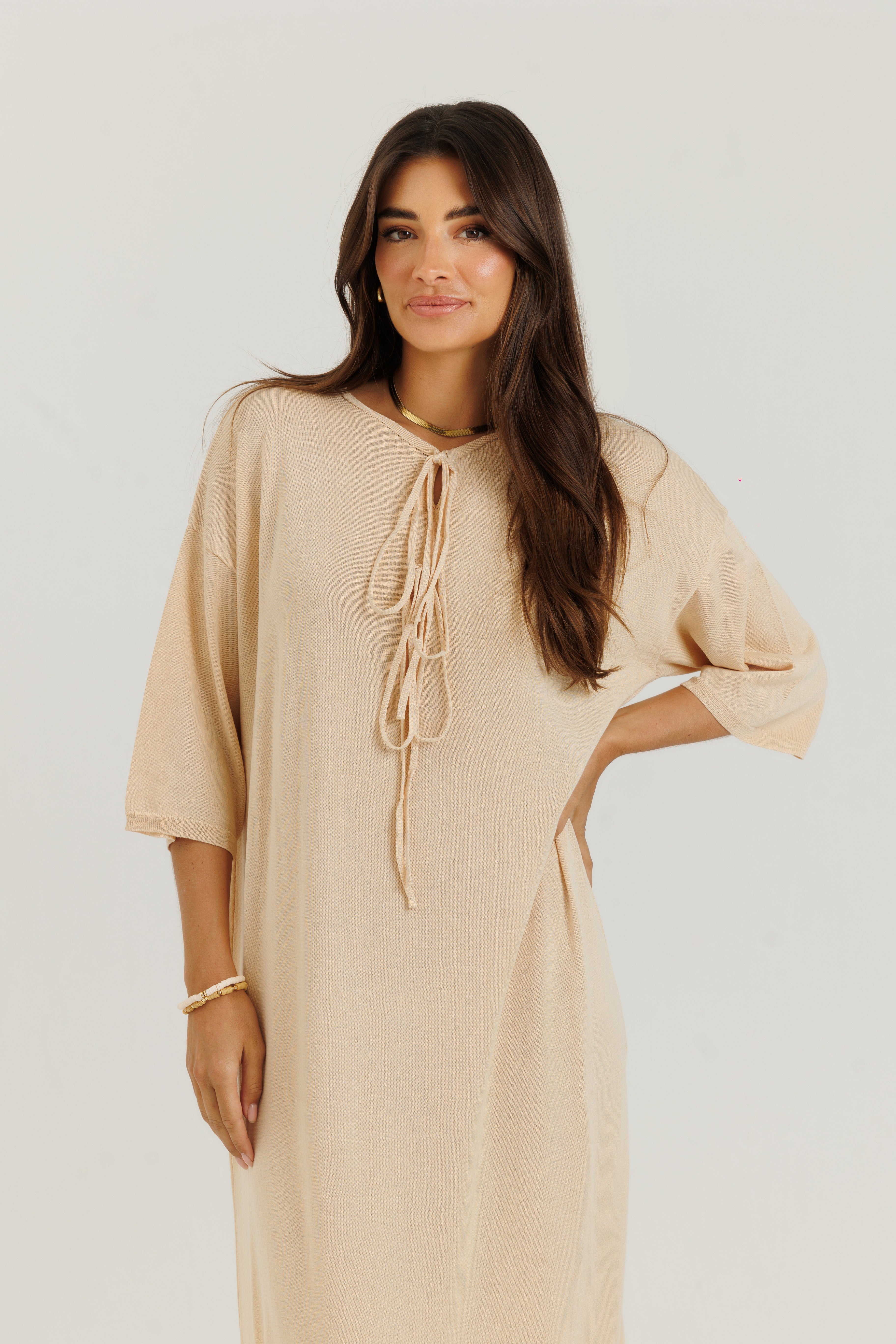 Cotton Charm Dress Tan