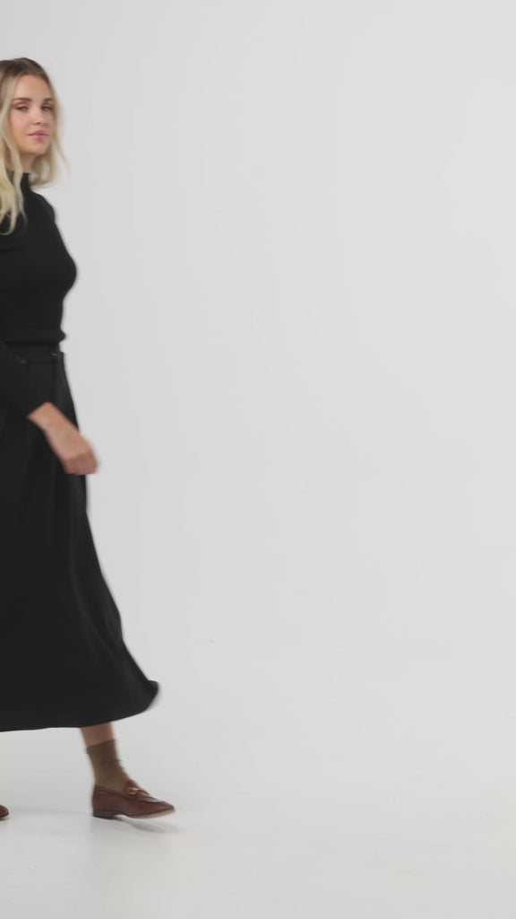 A timeless wardrobe staple, this navy maxi skirt features a flattering A-line silhouette and high-waisted fit. Made from structured suiting fabric, it’s perfect for both professional and polished everyday looks.